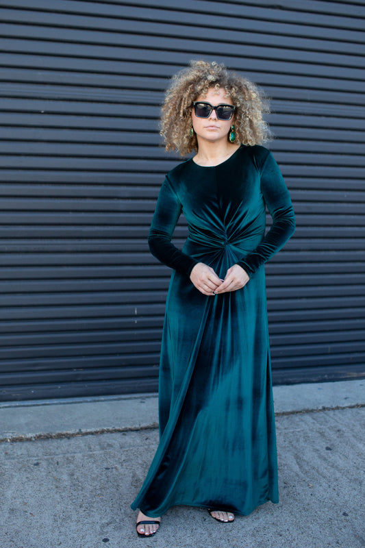 Emerald Velvet Knot Dress