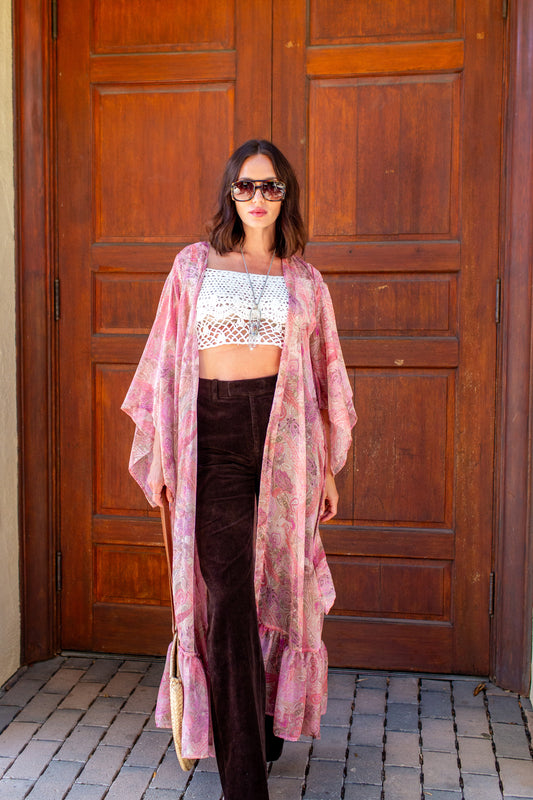 Janys Scarf Sleeve Kimono In Blushing Paisley