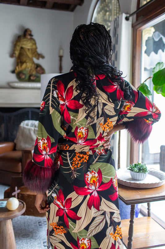 Jardin Nuit Faux Fur Koi Kimono