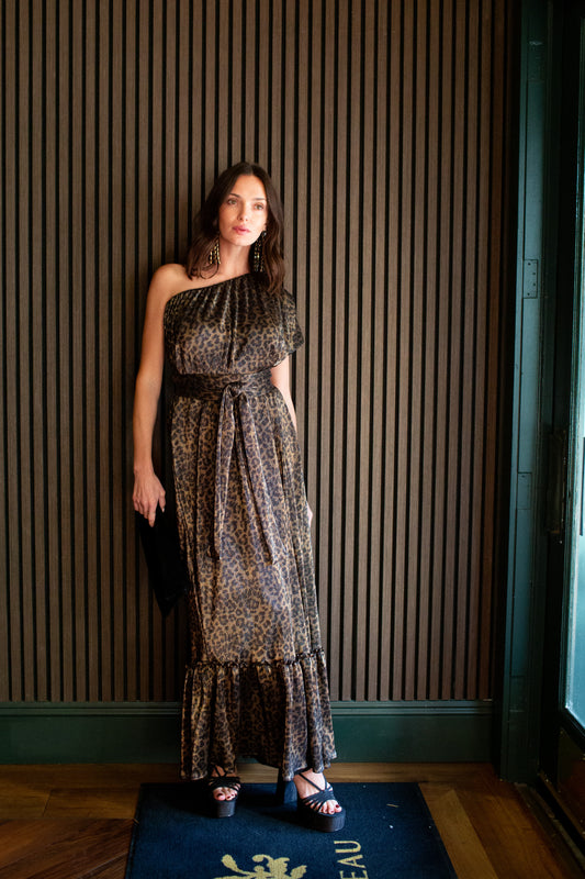 Venom One Shoulder Caftan in Serpent d’Améthyste