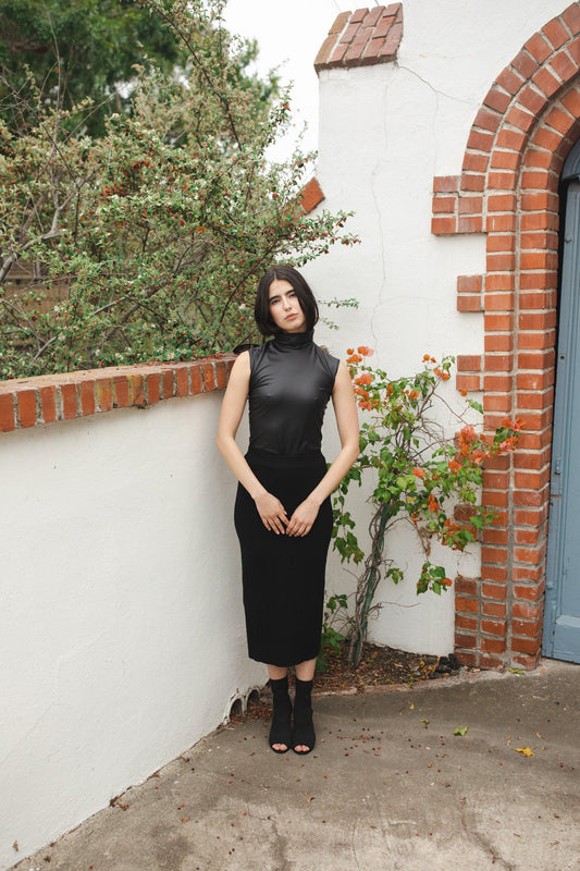 Matte Black Vegan Leather Mockneck Tank