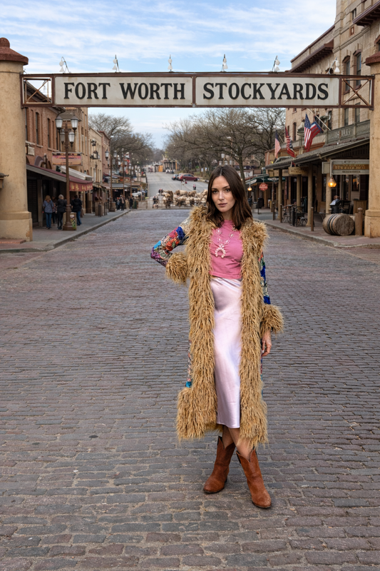 Penny Deluxe Wild Horses Faux Fur Trim Coat