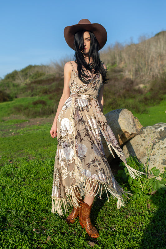 Laurenia Fringe Faux Wrap Dress (Pre-Order)