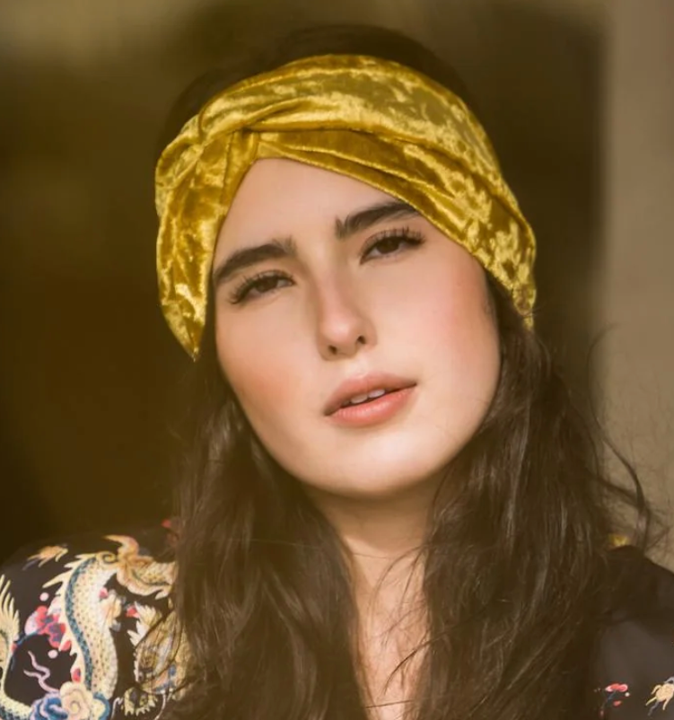 Mustard Velvet Twist Headband – A plush, golden accent that adds warmth, texture, and a touch of decadence to the look.