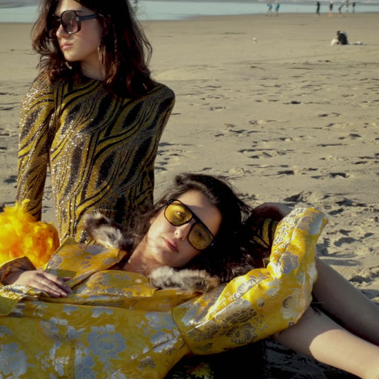 This sophisticated stunner has all the right details - generous bishop sleeves with feather detail, flowing midi length maxi skirt, and a slim matching sash for a cinched waist. Crafted with a, airy fabric embellished in rose sequins that drapes beautifully to create a timeless silhouette She is perfect for a night on the town. Comes with matching slip and lots of love.