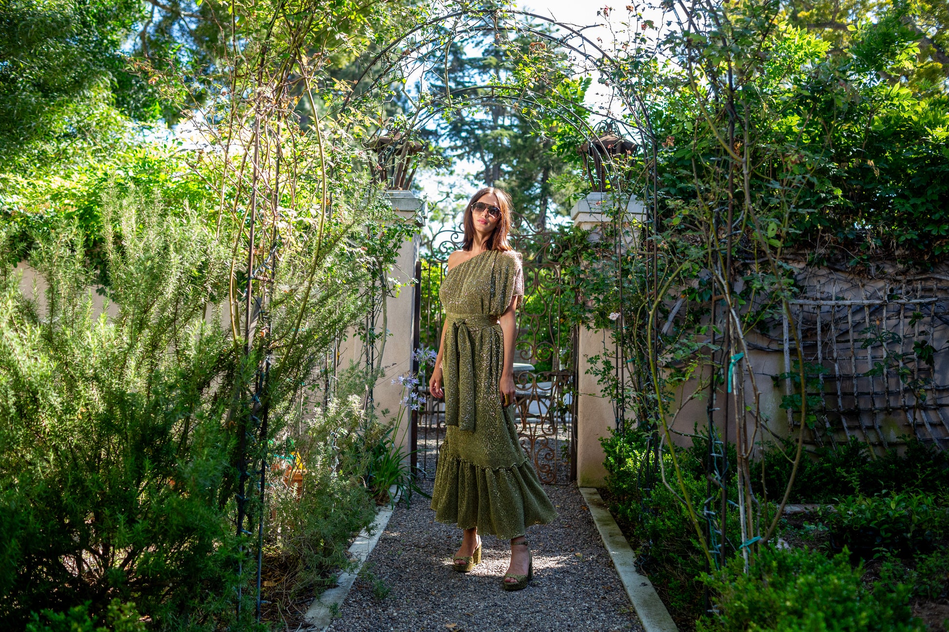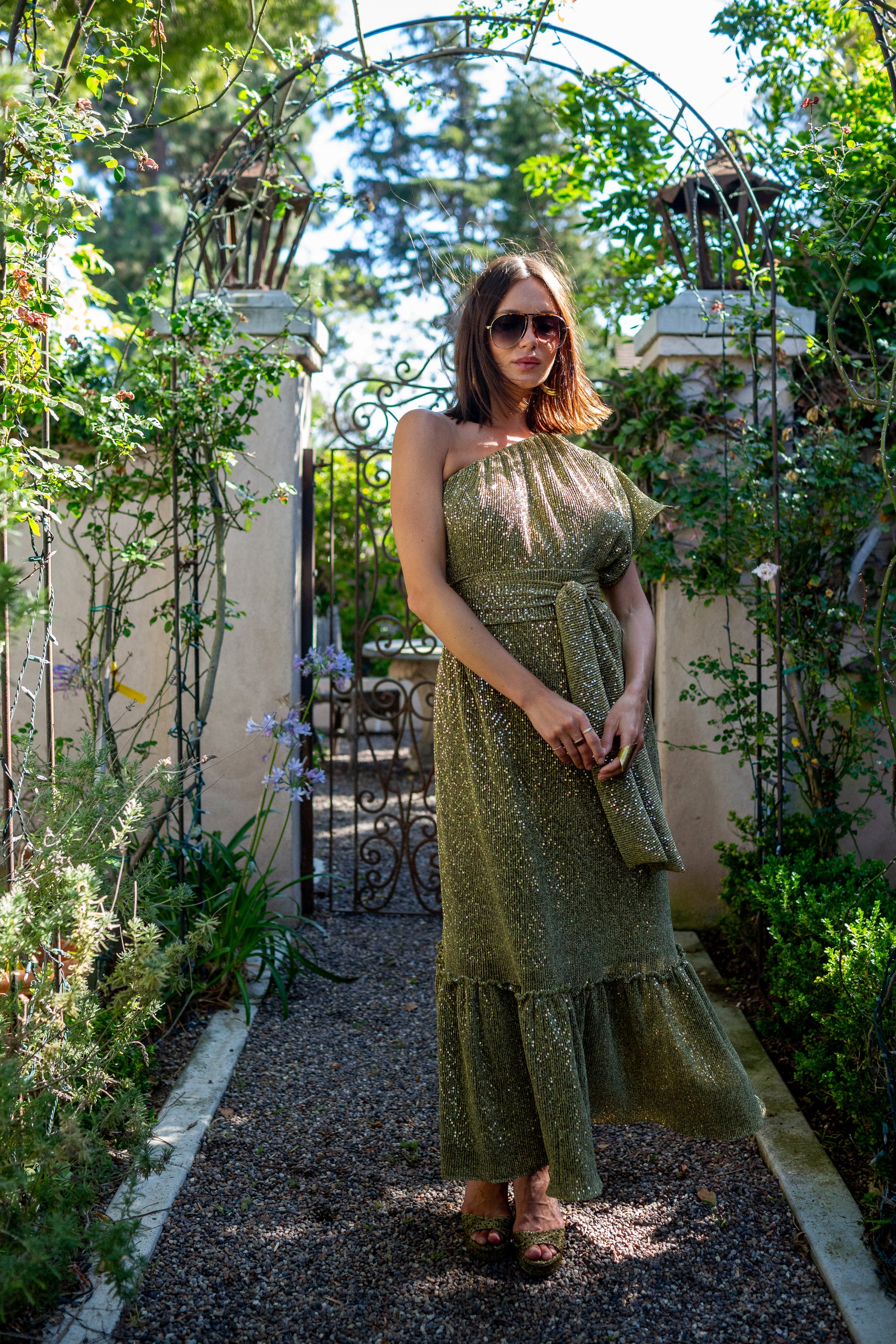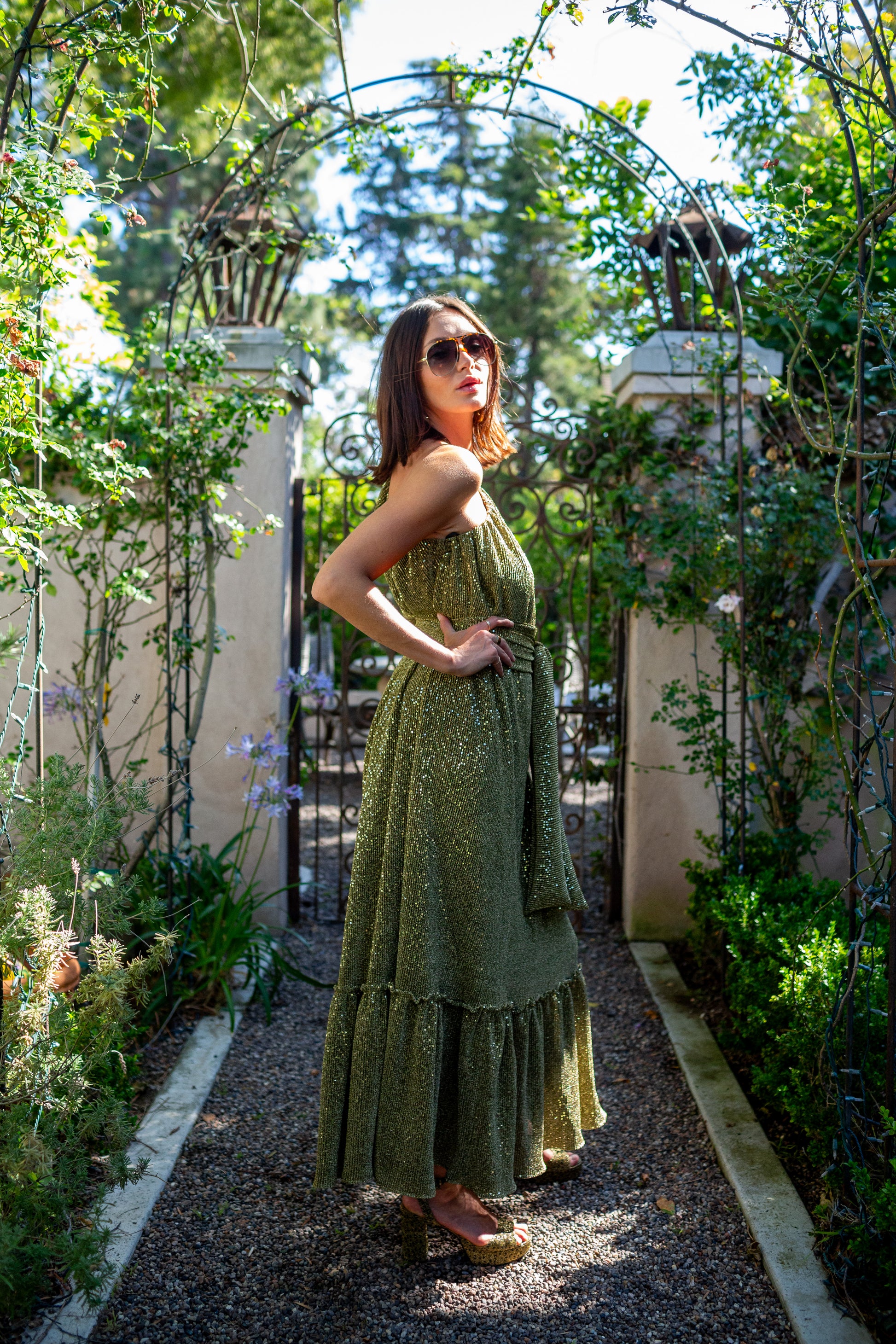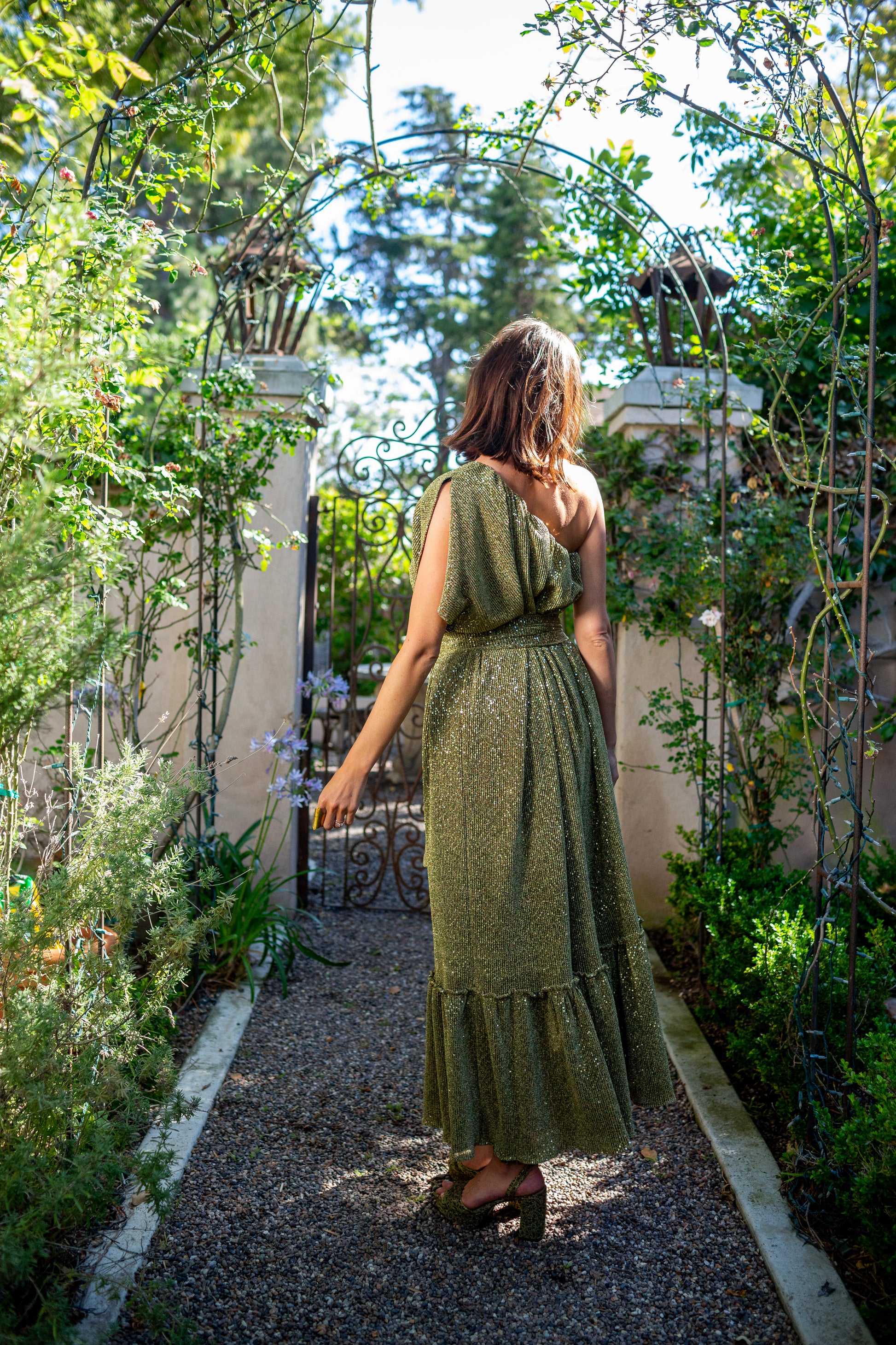 Honey Diamond Pleated One-Shoulder Maxi Dress