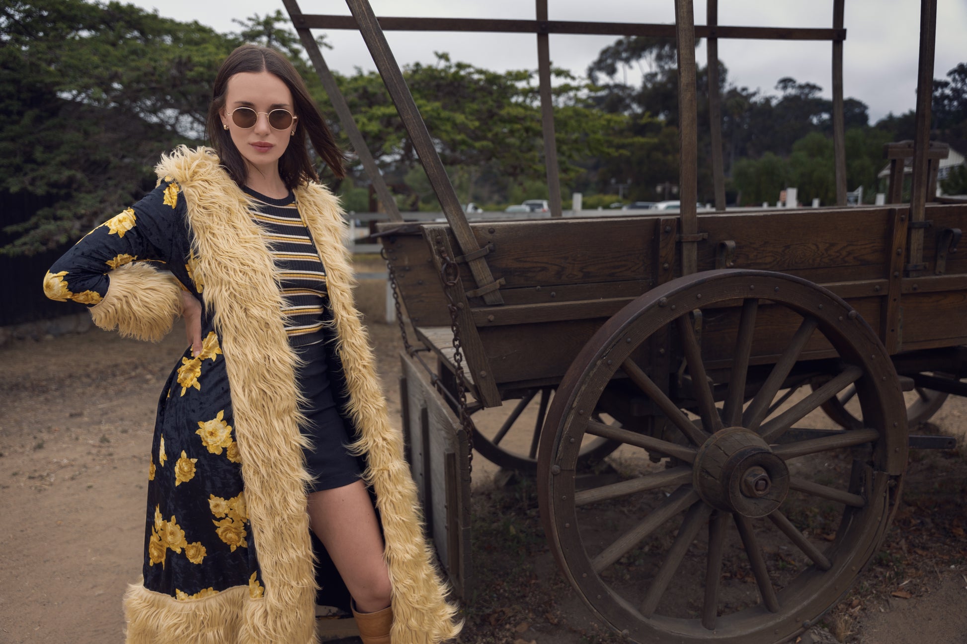 🌸 Rose & Lark Boho Bundle — Larkspur Wrap Dress + Penny Deluxe Antique Rose Jacket in Tawny Faux Fur 🌸