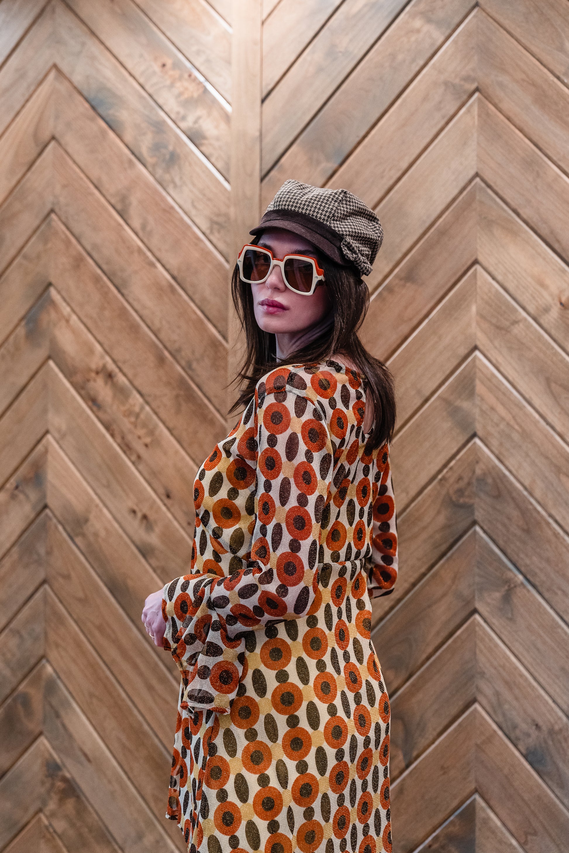 Introducing the Jill Dress in our Le Corbusier fabric, made with sparkling glitter mesh fabric. Its mini length and flirty kerchief cuffs make it perfect for a night out at the roller rink. Be the life of the party with this playful and unique take on the classic mini dress.