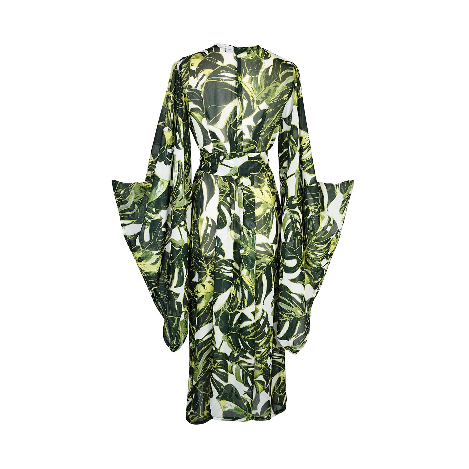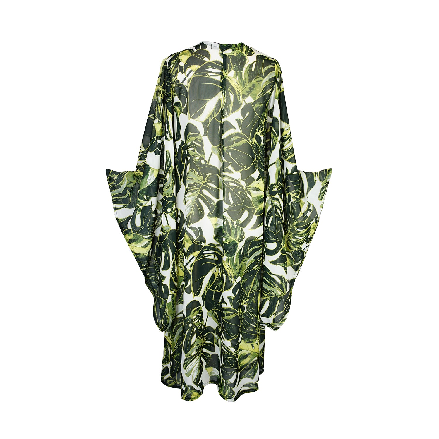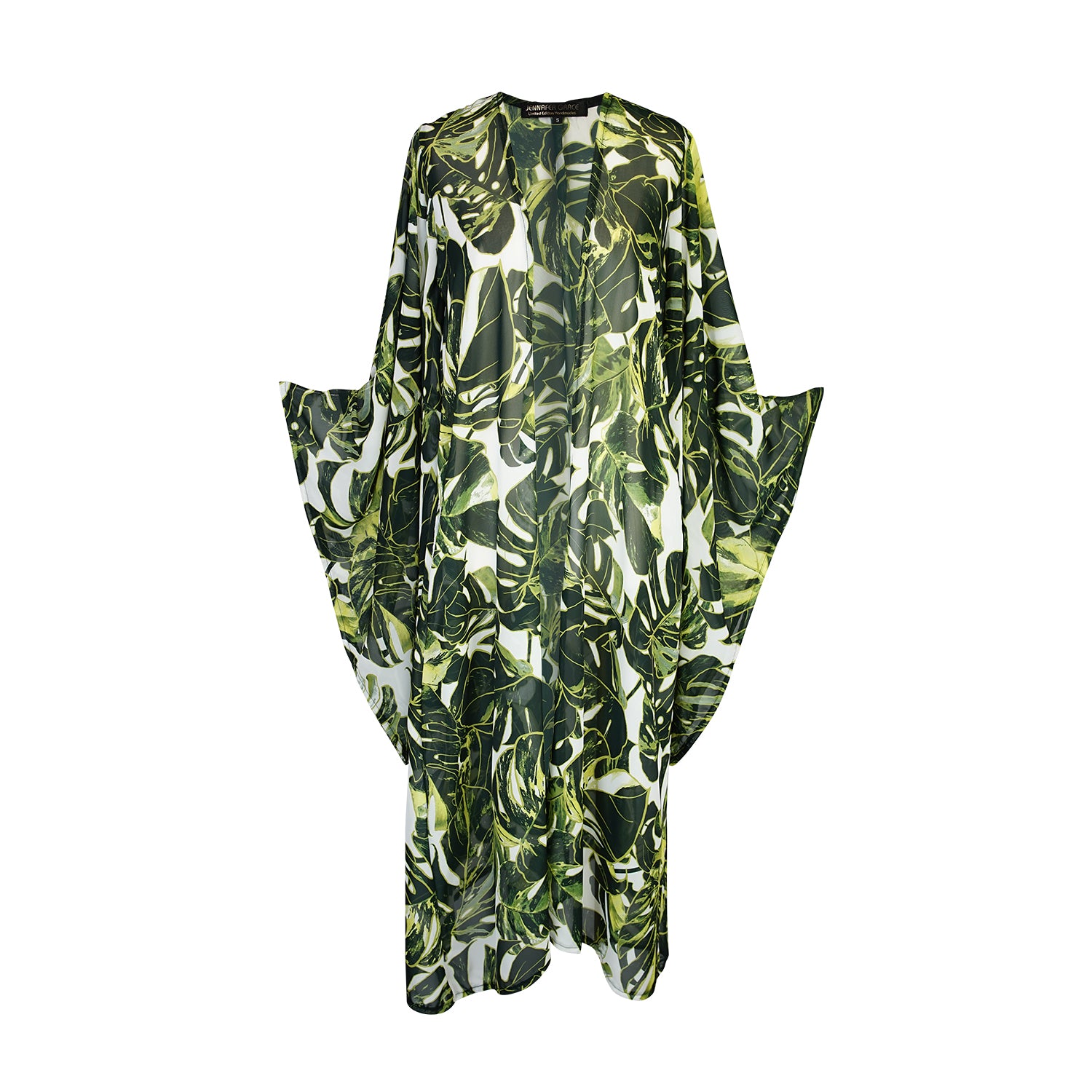 Designed for the modern woman, the Jennafer Grace Mallorca Palms Blanc Kimono features a delicate blend of deep green and olive palm fronds over a white chiffon, evoking a sense of jungle tranquility. Its soft, floaty and airy fabric will keep you comfortable and stylish in any environment, while the muted tones make it a versatile piece for any occasion.
