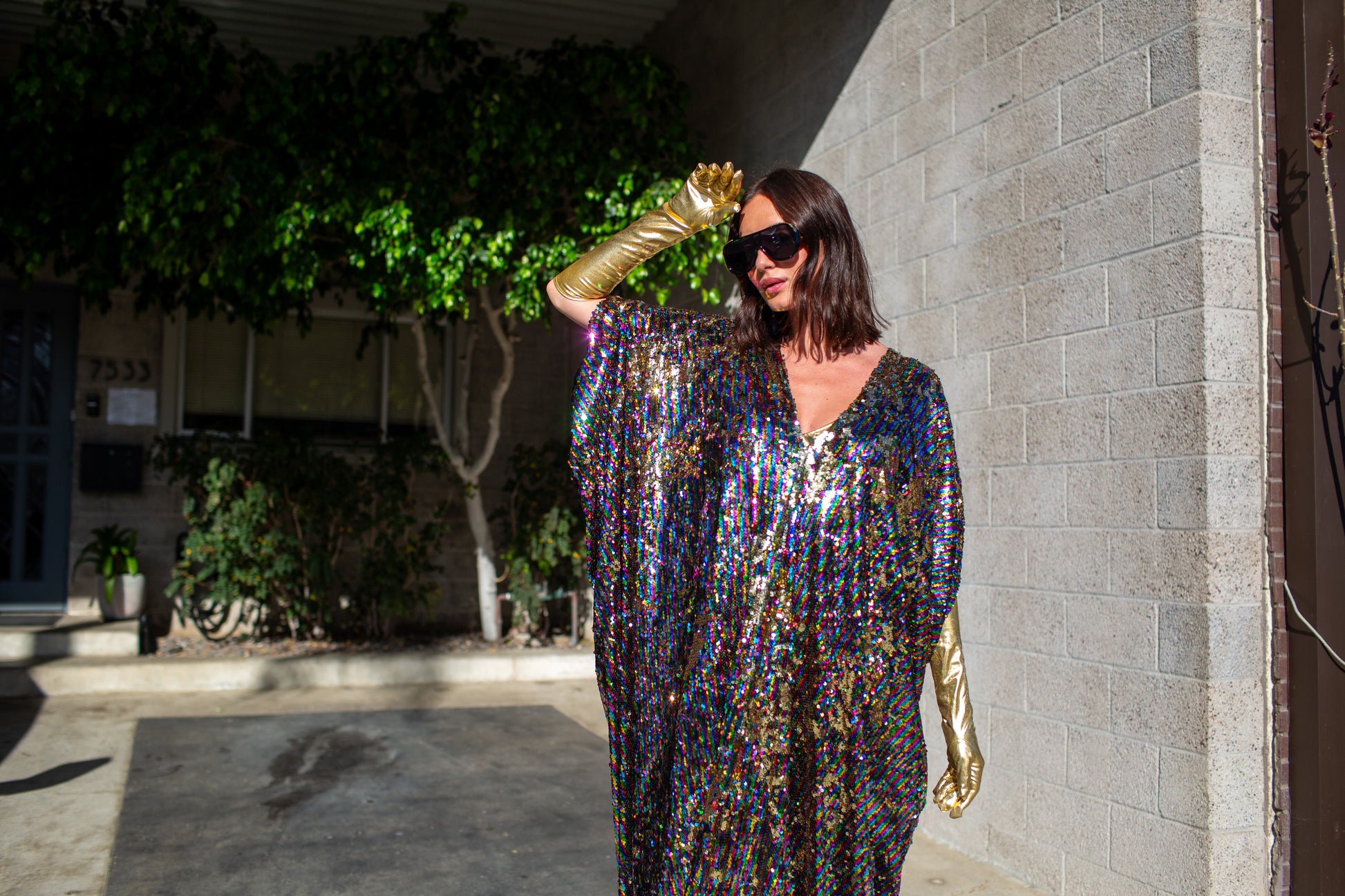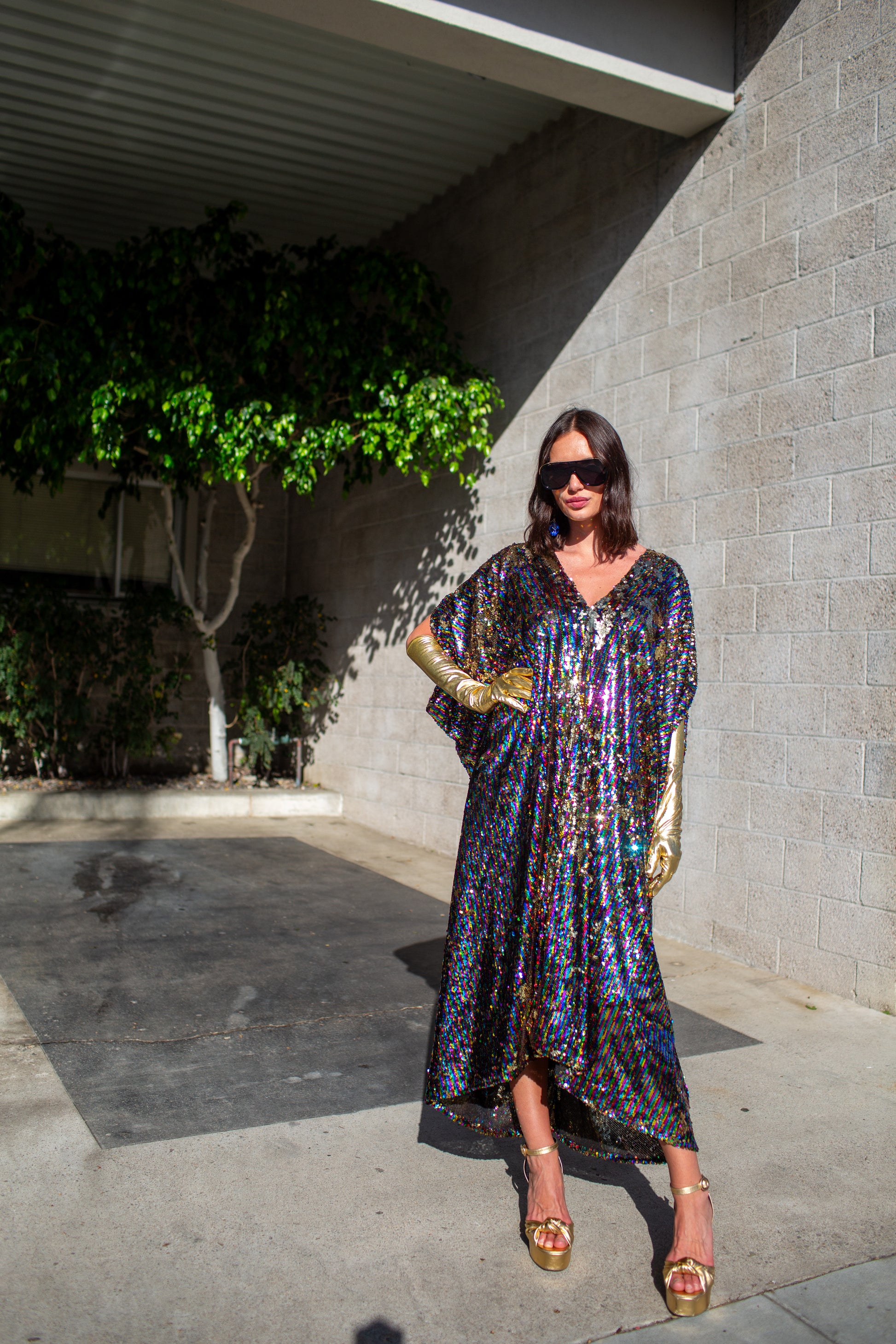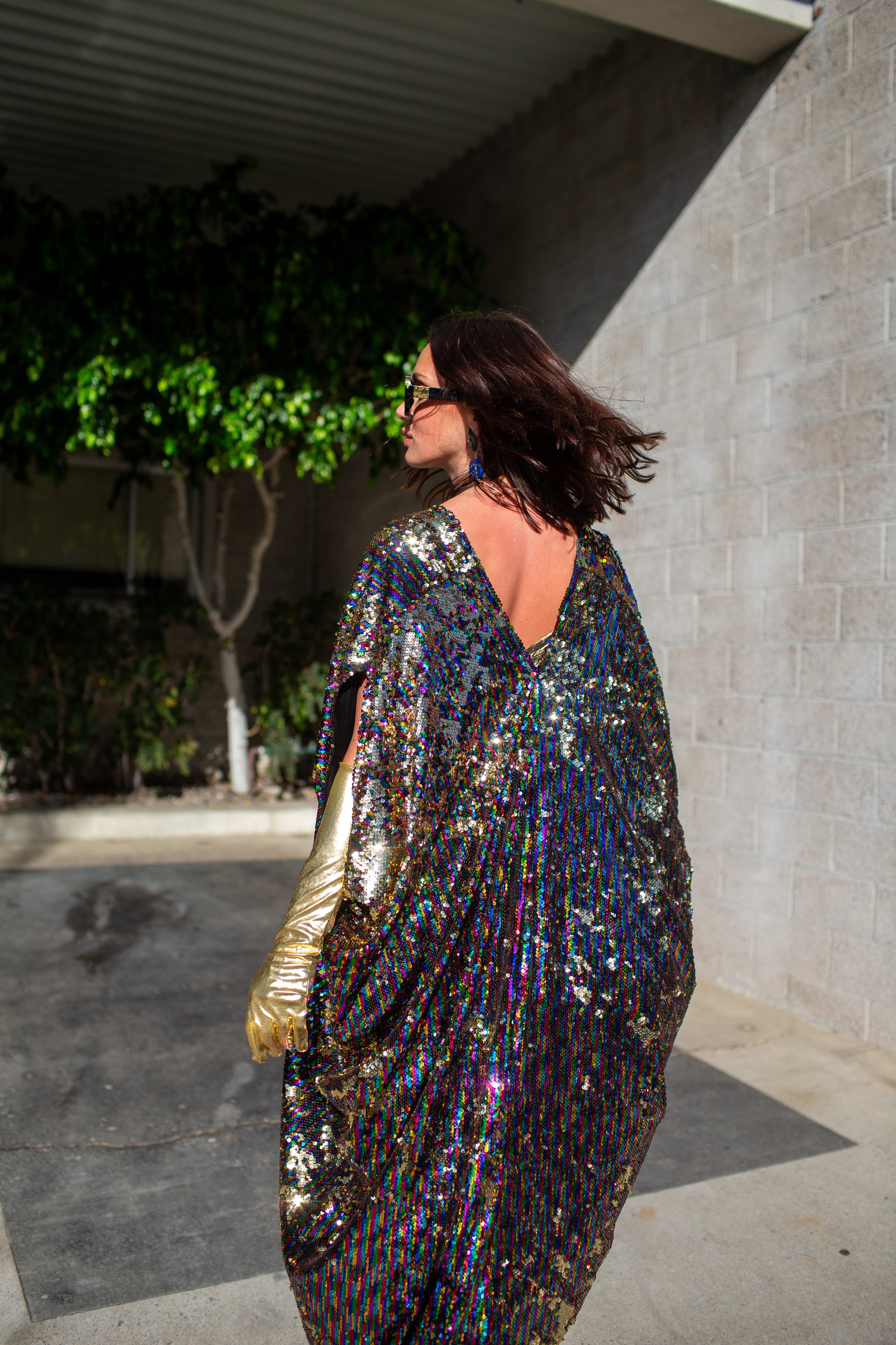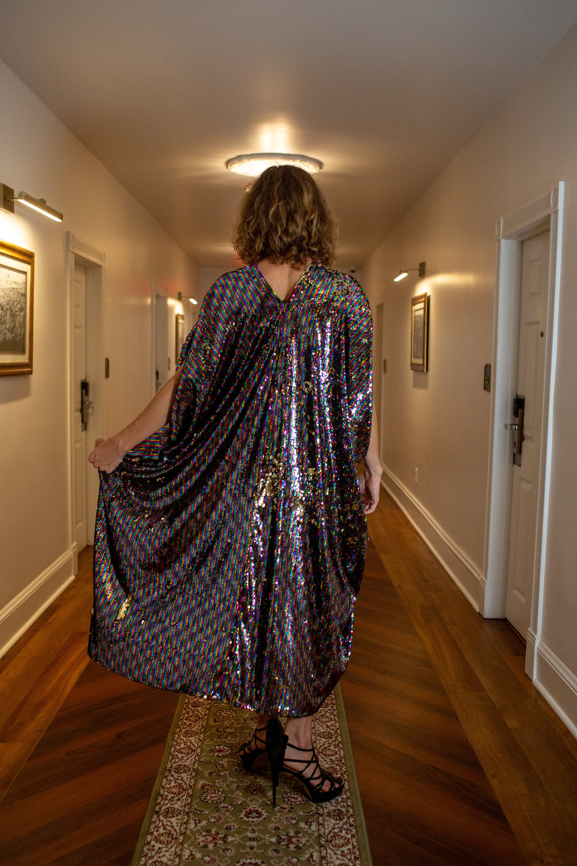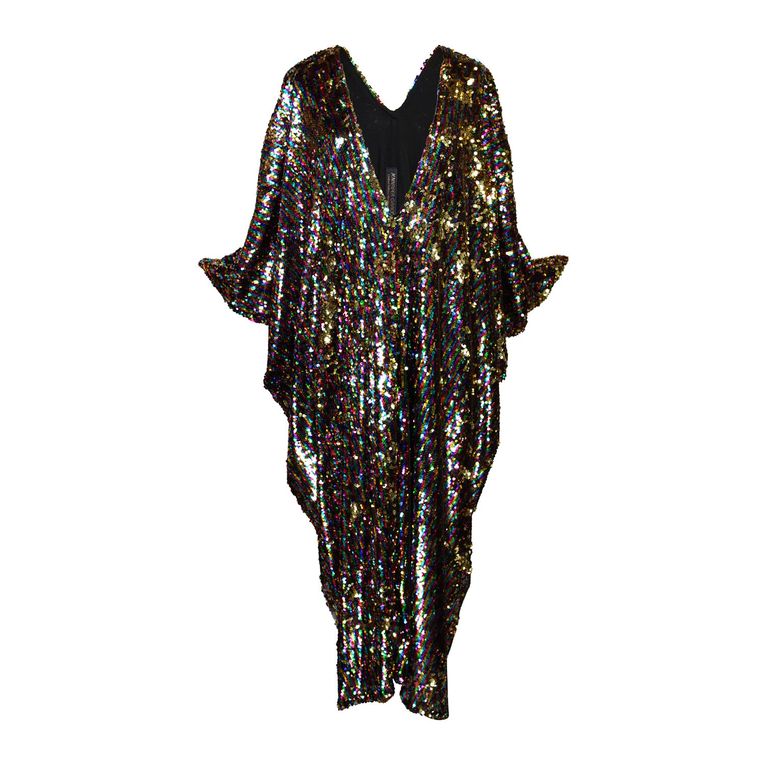 Step into a world of PRIDE and take a leap into your identity with the RAINBOW RAGE Caftan! This caftan is a glamorous and all-inclusive addition to your wardrobe, featuring reversible rainbow sequins with a haze of gold underneath that will make you stand out in any crowd. Its comfortable yet cozy shape will have you feeling confident and ready to conquer anything.