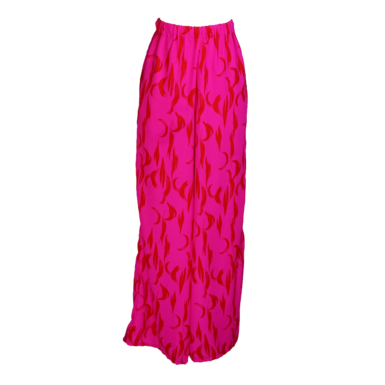 Slip into effortless power dressing with the Rouge Reverie Dolman Palazzo Set by Jennafer Grace -a striking two piece that pairs our signature dolman sleeve wrap top with flowing palazzo pants. Rendered in a bold pink and red abstract flame print she's equal parts firey and fluid, draping the body with dramatic ease. The wrap silhouette lets you cinch the waist with a tasseled belt,  for a sculpted look while the wide leg pant moves with goddess like flow. Whether worn together as a head turning ensemble or styled separately for endless versatility the Monochrome Serpent Set is a statement in motion- wild, unapologetic and undeniably chic.