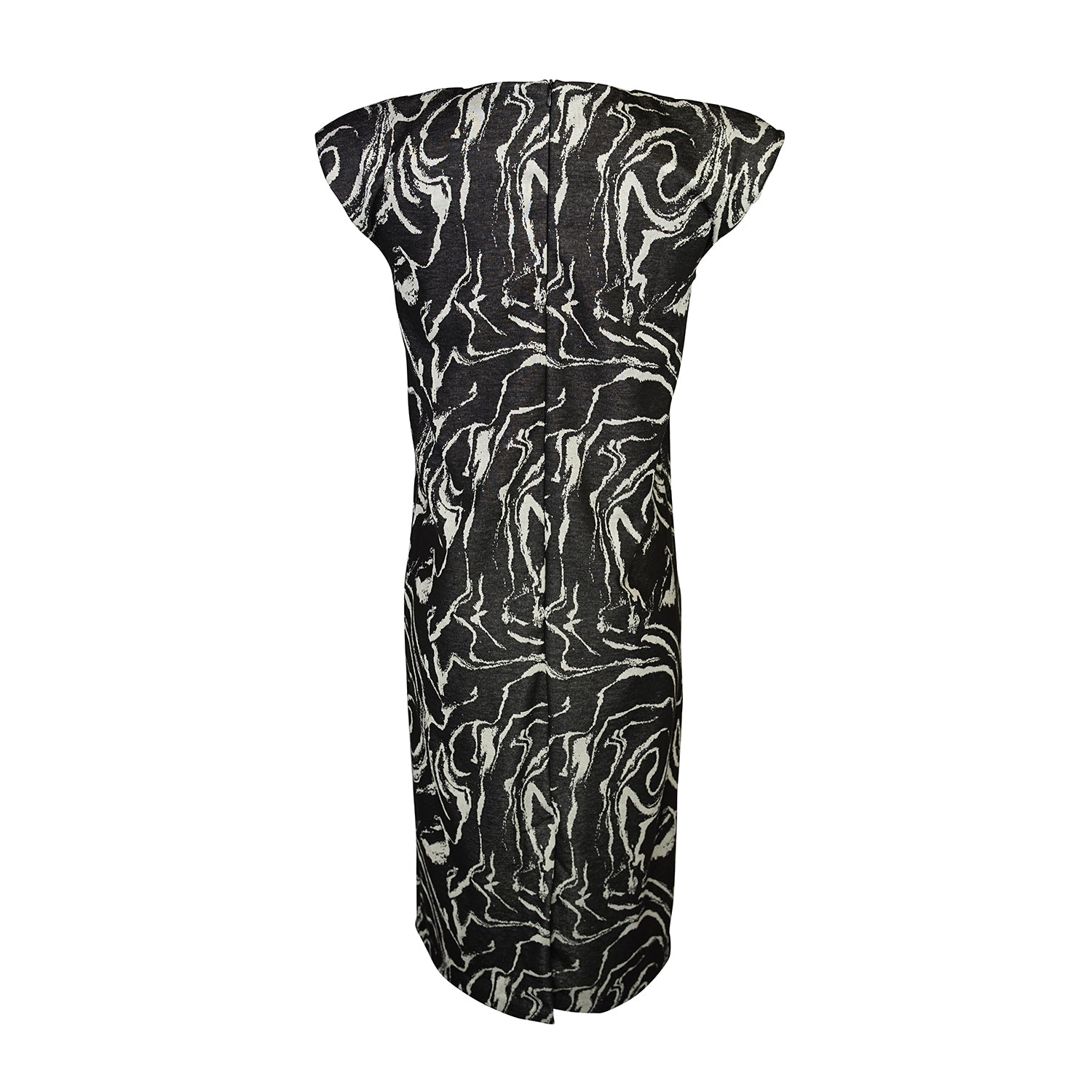 This is the Sabrina Shift! This obsidian colored; midi is a modern take on the classic shift, featuring shoulder pads for a sleek silhouette and a bold back split. The unique marble print adds a touch of fun to the cozy jersey fabric. Upgrade your wardrobe with this slim line stunner!