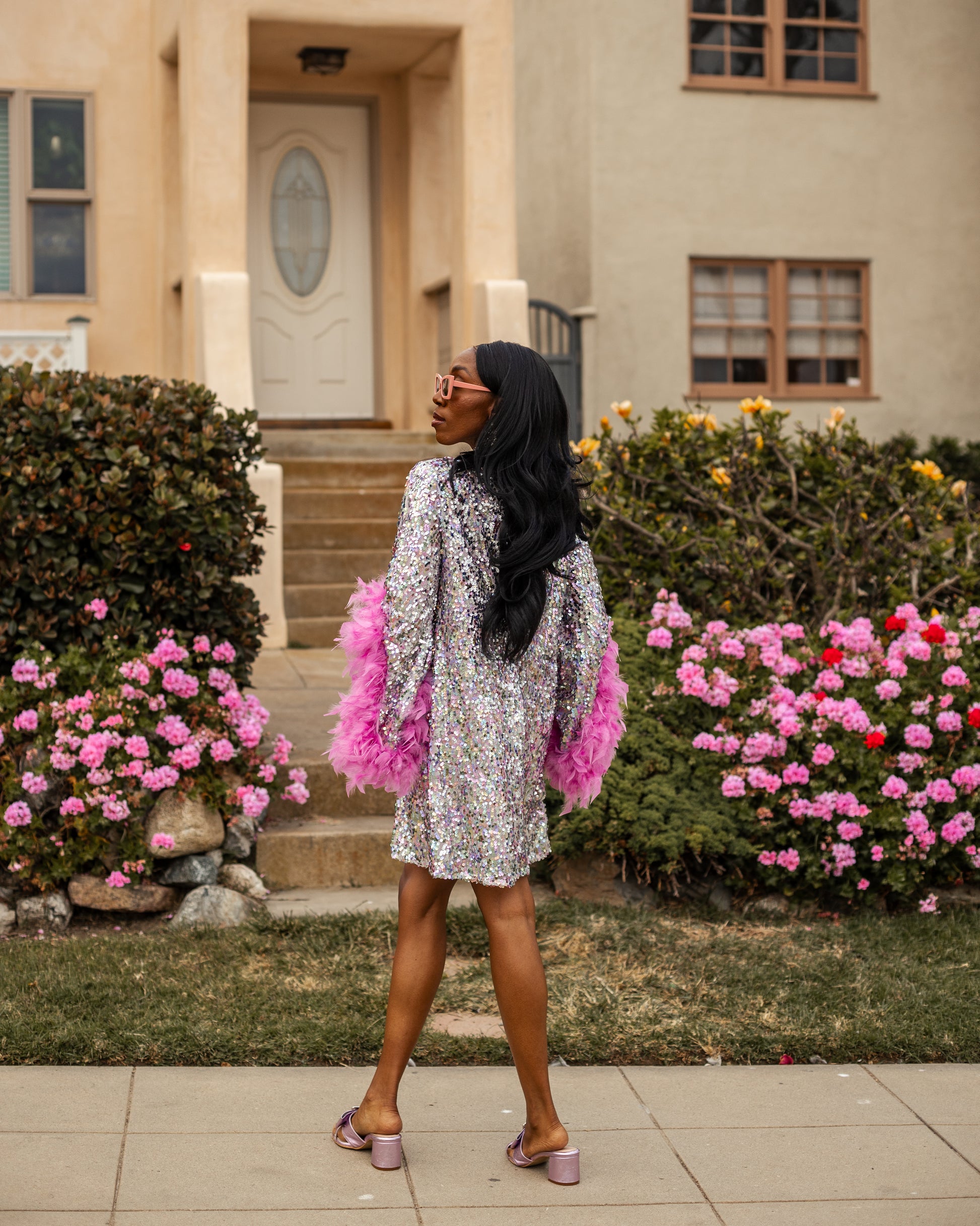 Dry clean to best preserve the sequins and feathers.